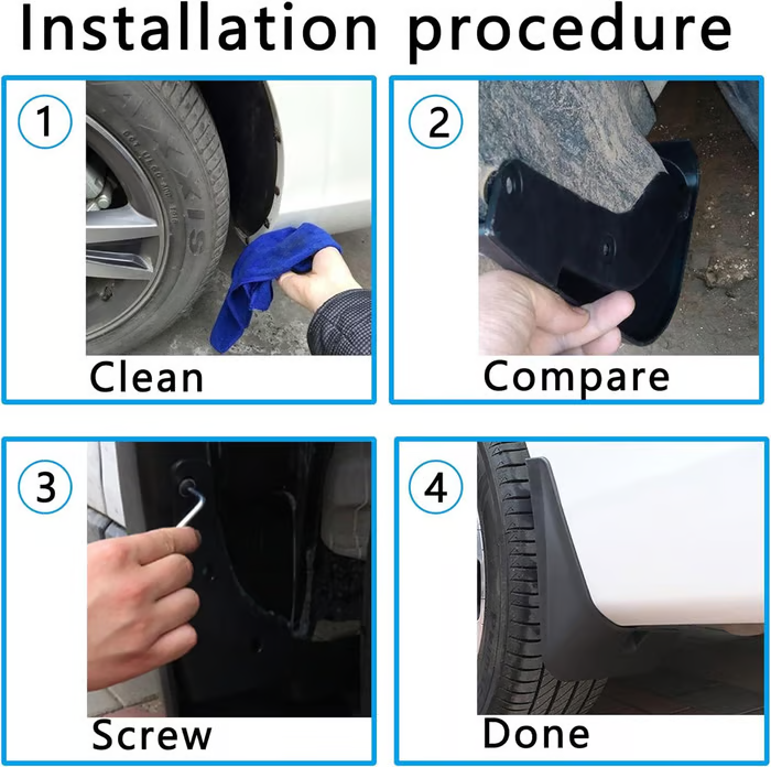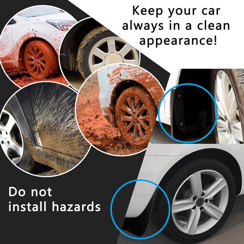 【Prevent Soil Splashing】Don't let the splashed soil cover your gorgeous car body! This not only affects the aesthetics of the car, but also affects your driving experience! Let these practical mud flaps become a strong shield for your beloved car! It can greatly prevent soil from splashing onto car tires and body. Keep your car always in a clean appearance!