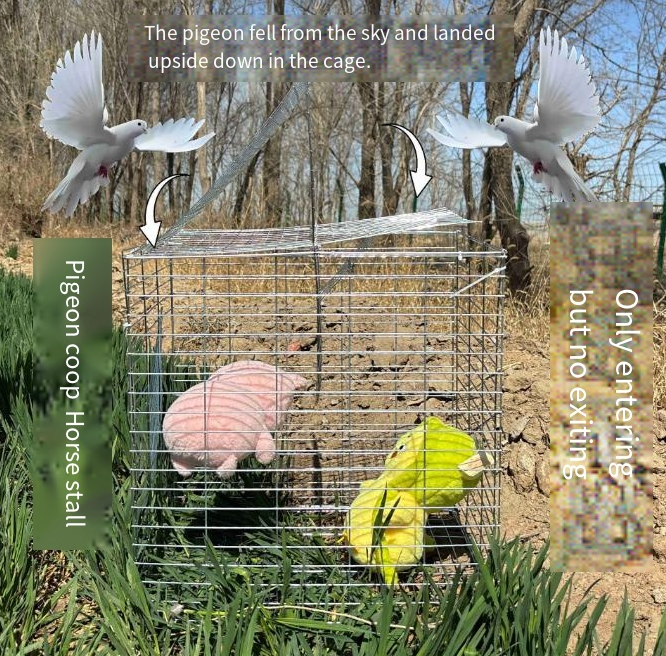3. Inescapable: Once the entrance closes, the internal structure locks in reverse; the pigeon is unable to push the exit open from the inside, ensuring a "one-way entry" system.