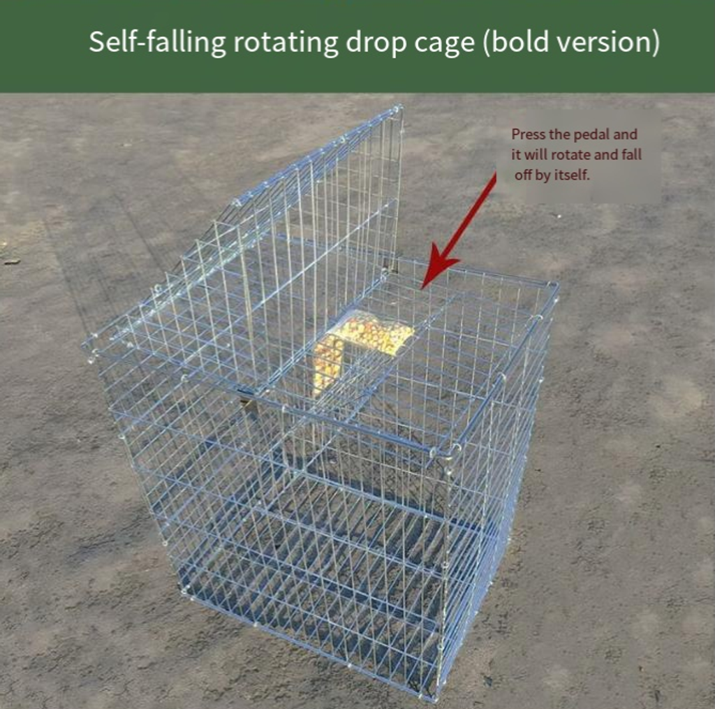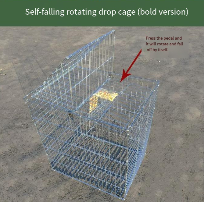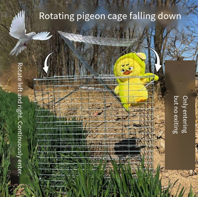 - Features an automated rotating/flipping mechanism combined with a trigger pedal design: when a pigeon is lured by the bait inside the cage and steps onto the pedal, the entrance automatically flips or rotates shut. This ensures a "one-way-in, no-way-out" capture—eliminating the need for manual supervision and significantly boosting trapping efficiency.